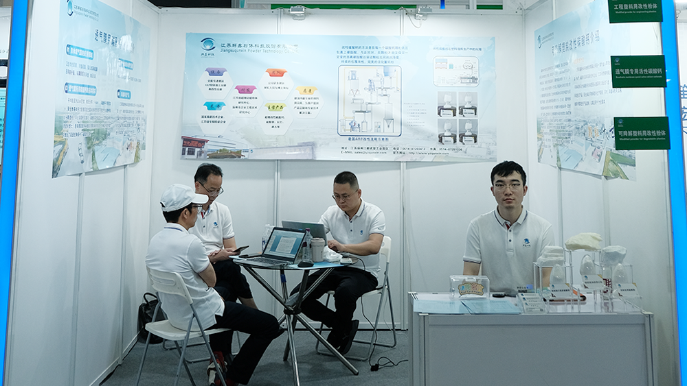 ??會(huì)展期間,群鑫科技銷售人員向每一位訪客詳細(xì)介紹了公司的發(fā)展與產(chǎn)品性能,得到訪客的高度認(rèn)可,訪客都主動(dòng)要求添加微信;特別是群鑫科技總經(jīng)理蔣建平的技術(shù)講解,讓訪客長時(shí)間駐足聆聽,離開時(shí)約定待產(chǎn)品投放市場后再做深度交流,爭取成功合作,以盡快減少該產(chǎn)品對(duì)跨國公司的依賴。蔣總還詳細(xì)介紹了改性碳酸鈣的制備方法與應(yīng)用原理。