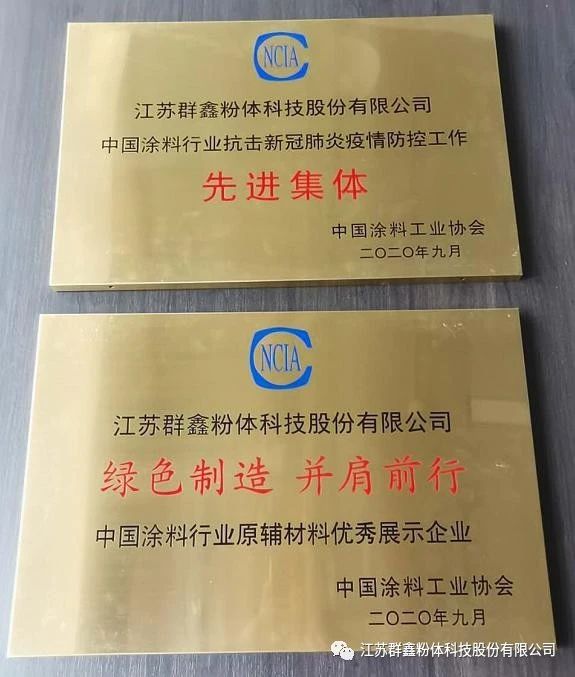 本屆展會陣容強大,在“綠色制造,并肩前行”的指引下,匯集了涂料企業、原料企業、設備企業、檢測企業、涂裝企業及相關企業共計兩百余家,參展范圍涵蓋行業上下游,區域遍布海內外。在整個展會期間,工業涂料、民用涂料、軍工涂料交相輝映,前沿技術、行業熱點輪番上演。展會開啟首日,“群鑫科技”便榮獲中國涂料工業協會授予的“中國涂料行業原輔材料優秀展示企業”殊榮,并因在今年年初的新冠肺炎疫情抗擊工作中表現突出,一并榮獲“抗擊新冠肺炎疫情防控工作先進集體”的光榮稱號。